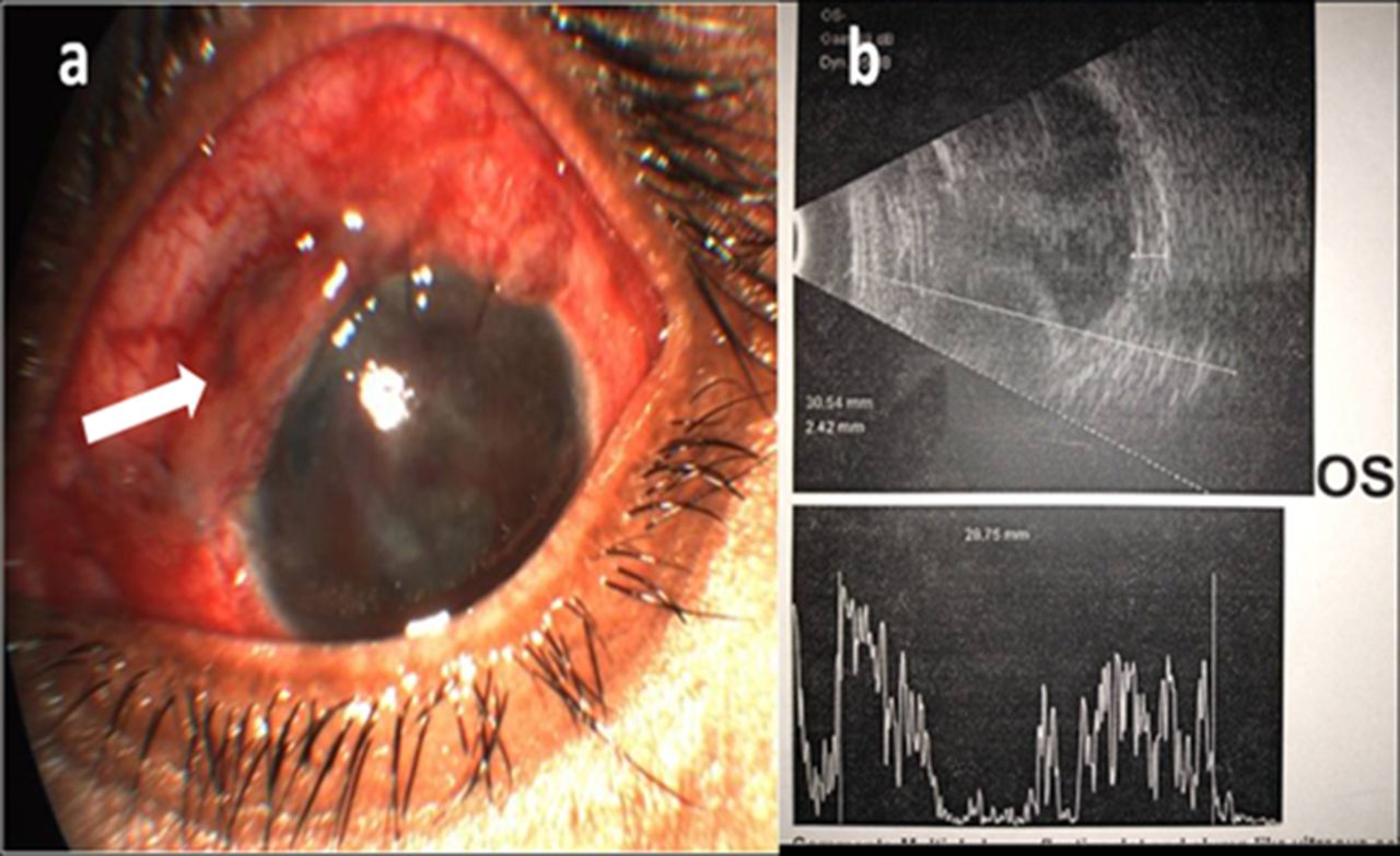 전방이 소실되면서, 안압이 증가된 소견을 보입니다.