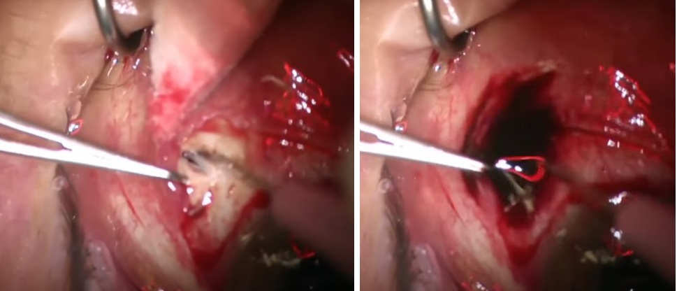 섬유주 절제술 단독, 혹은 섬유주 절제술과 백내장 동시 수술 도중 최대 85%까지의 빈도로 발생이 보고되어 있습니다.