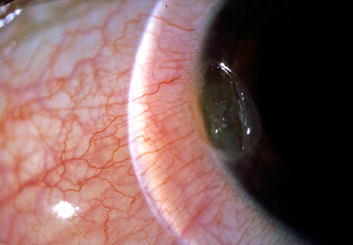 그 인접한 각막부분에서 패임이 발생하여, 눈물층이 각막위에 고이는 현상을 말합니다.