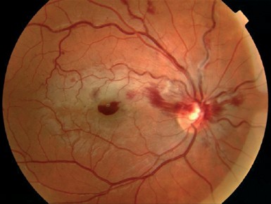 이로인해서 시신경유두주위에 있던 망막 정맥이 폐쇄되면서