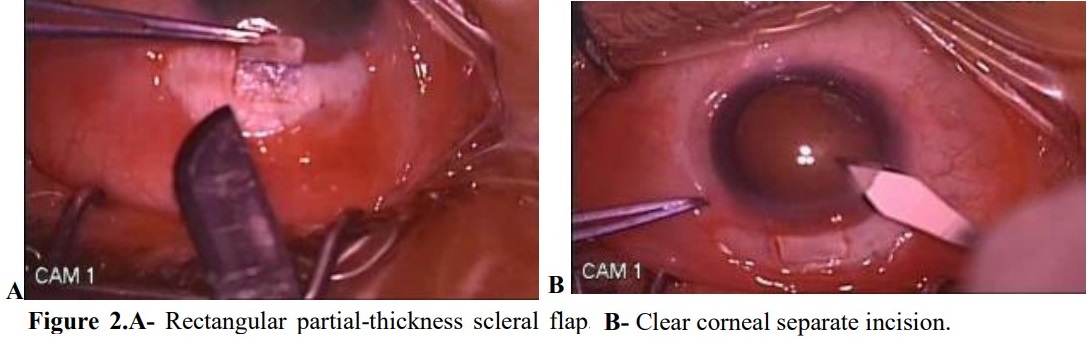 이에는 섬유주절제술을 위해 만들어놓은 공막창(scleral wound)을 통해서 백내장 수술을 함꼐하는 One site phacotrabeculectomy 의 방식도 가능가며,