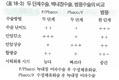 백내장 수술(ECCE or Phaco)을 먼저하고난뒤에 최소 1달 이상의 여유를 둔뒤에 녹내장 여과수술(F)을 하는것과