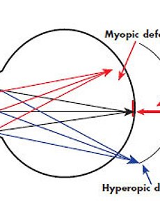 근시(myopia)란, 가까이 있는 사물은 잘보이고, 멀리있는 사물은 잘 보이지 않는 상태로, 눈에 힘을 주지 않고 (조절이 일어나지 않은 상태) 편안하게 있는 상태에서, 눈에 들어같 빛은 망막보다 앞쪽에 상을 맺게되는 광학적인 상태를 의미합니다. 이때 망막보다 앞쪽에 맺혀지는 상을 망막위에 정확하게 닿게 하기위해서 필요한 것이.. 빛을 퍼뜨려주는 역할을 하는 오목렌즈 입니다. 흔히 안과에서 환자나, 보호자에게, "근시가 있다"는 이야기를 하면, "시력이 마이너스 이냐"는 질문을 받게됩니다. 하지만, 시력에는 마이너스 시력이란 것은 없습니다. 시력은 항상 0 보다 큰 숫자로, 0.1, 0.2, 0.3 등 분수나 소수로 표현하게됩니다. 0.1 이라는 가장 큰 시표 역시 보지 못하는 경우에는, 0.1 * 3..
